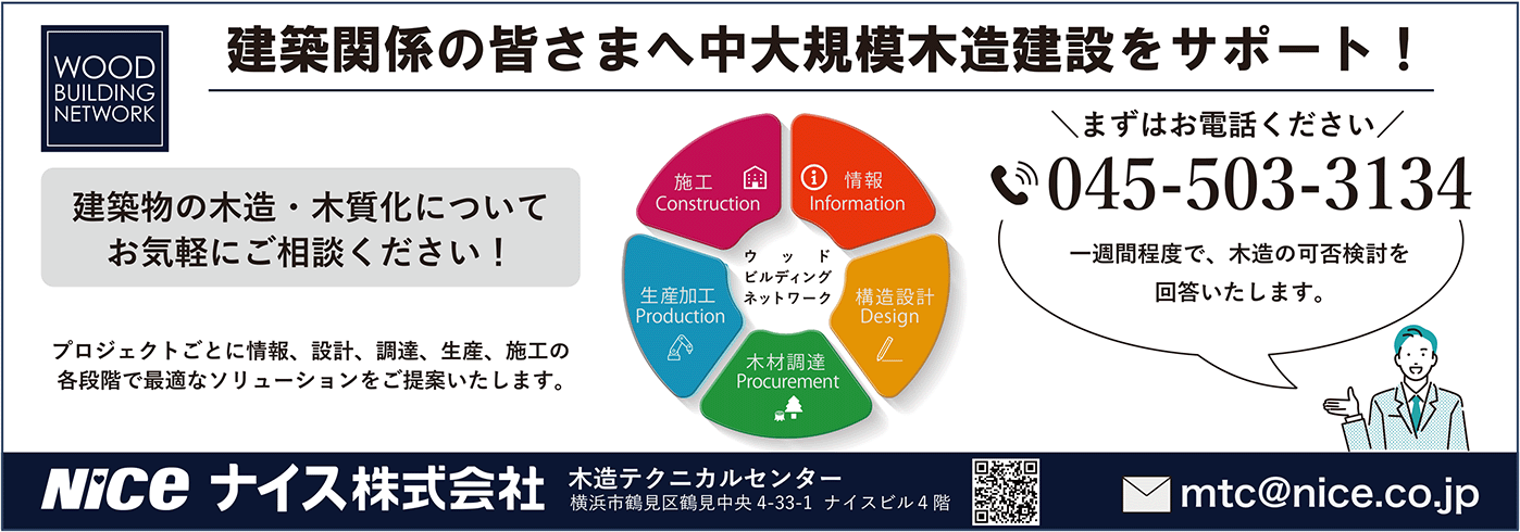本プロジェクトは2024年12月に開始、2025年6月に着工した後、今年1月9日に引き渡し、23日にオープンしました。ナイスグループが元請けとして木材調達から設計、施工までを行ったほか、設計監修を北畑栄建築研究所が担当しました。