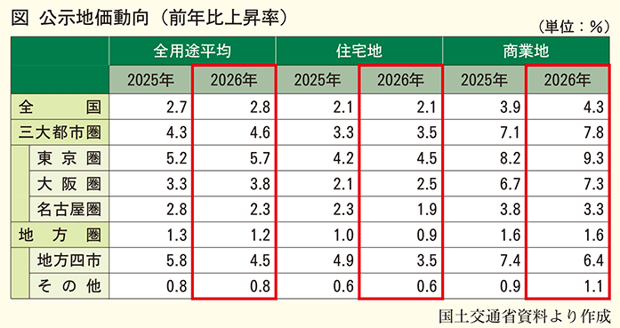 国土交通省 2026年公示地価を発表 景気の緩やかな回復で上昇幅が拡大