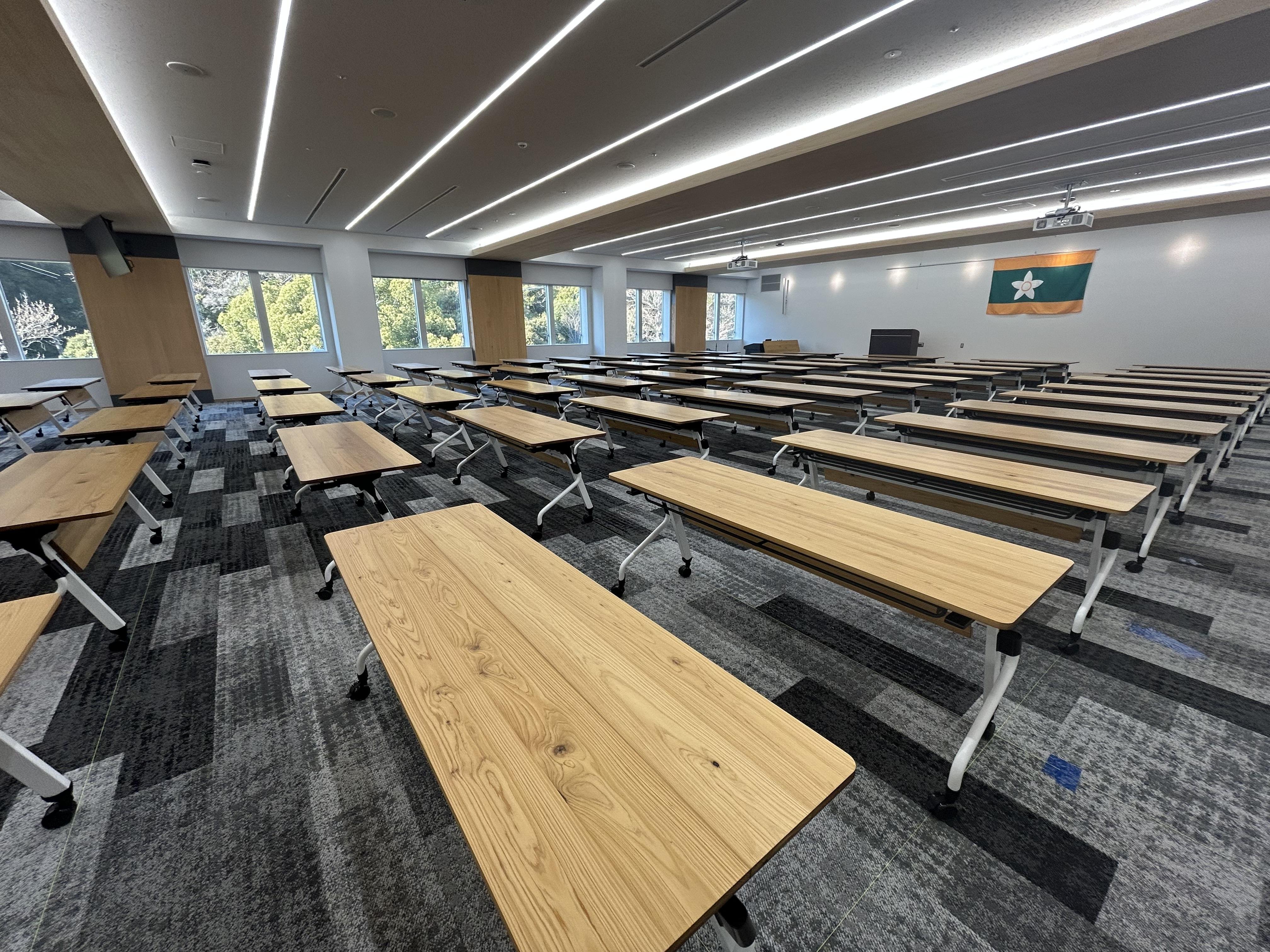 愛媛県庁第二別館11階の大会議室に設置された113台の会議テーブル
