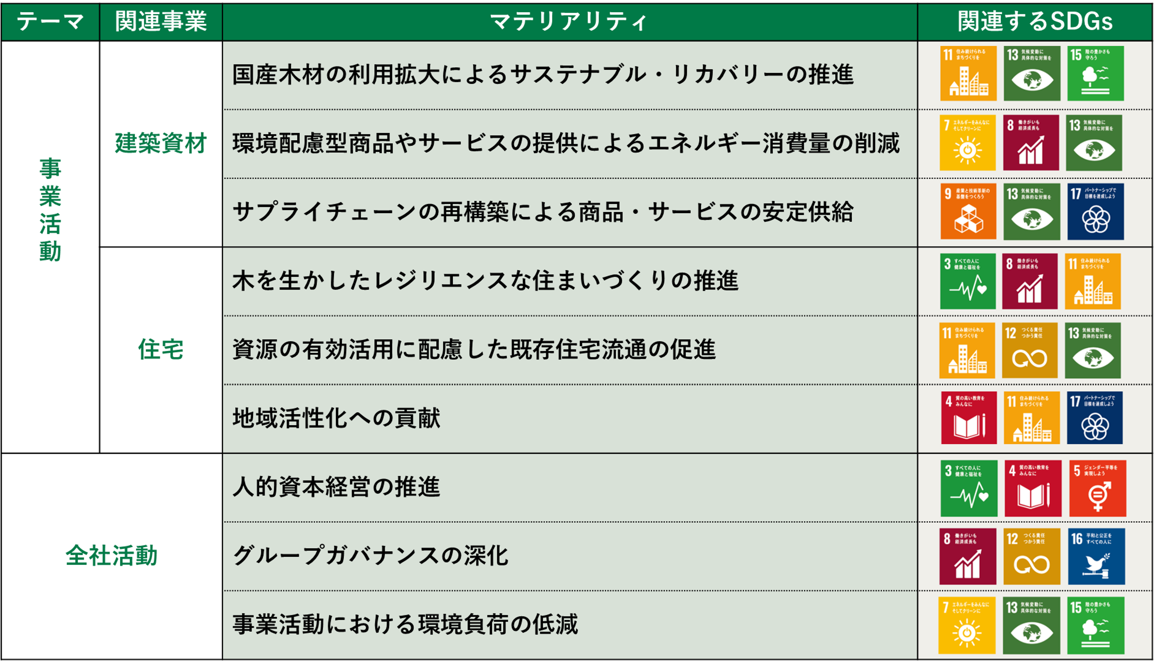 産官学の連携を図り、持続可能な社会形成を担う森林の保全や林業・木材産業の活性化、子どもたちの成長、住まいや暮らしに関するサービスの提供により、地域活性化に貢献します。