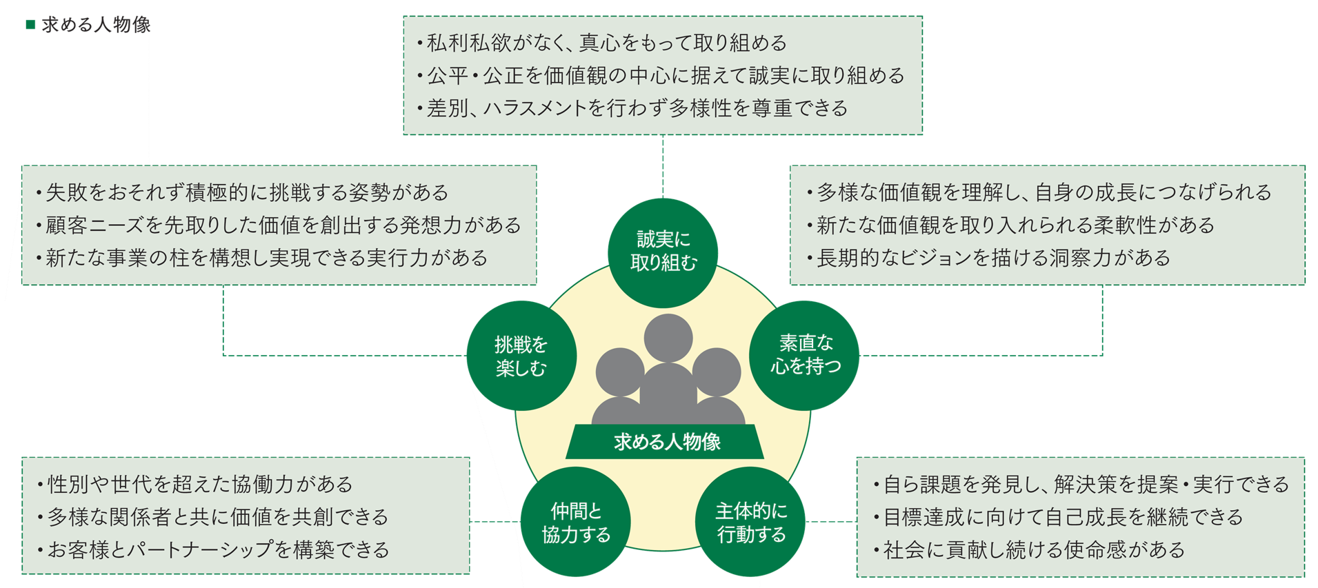 求める人物像「挑戦する心、創造する力、つながる未来」